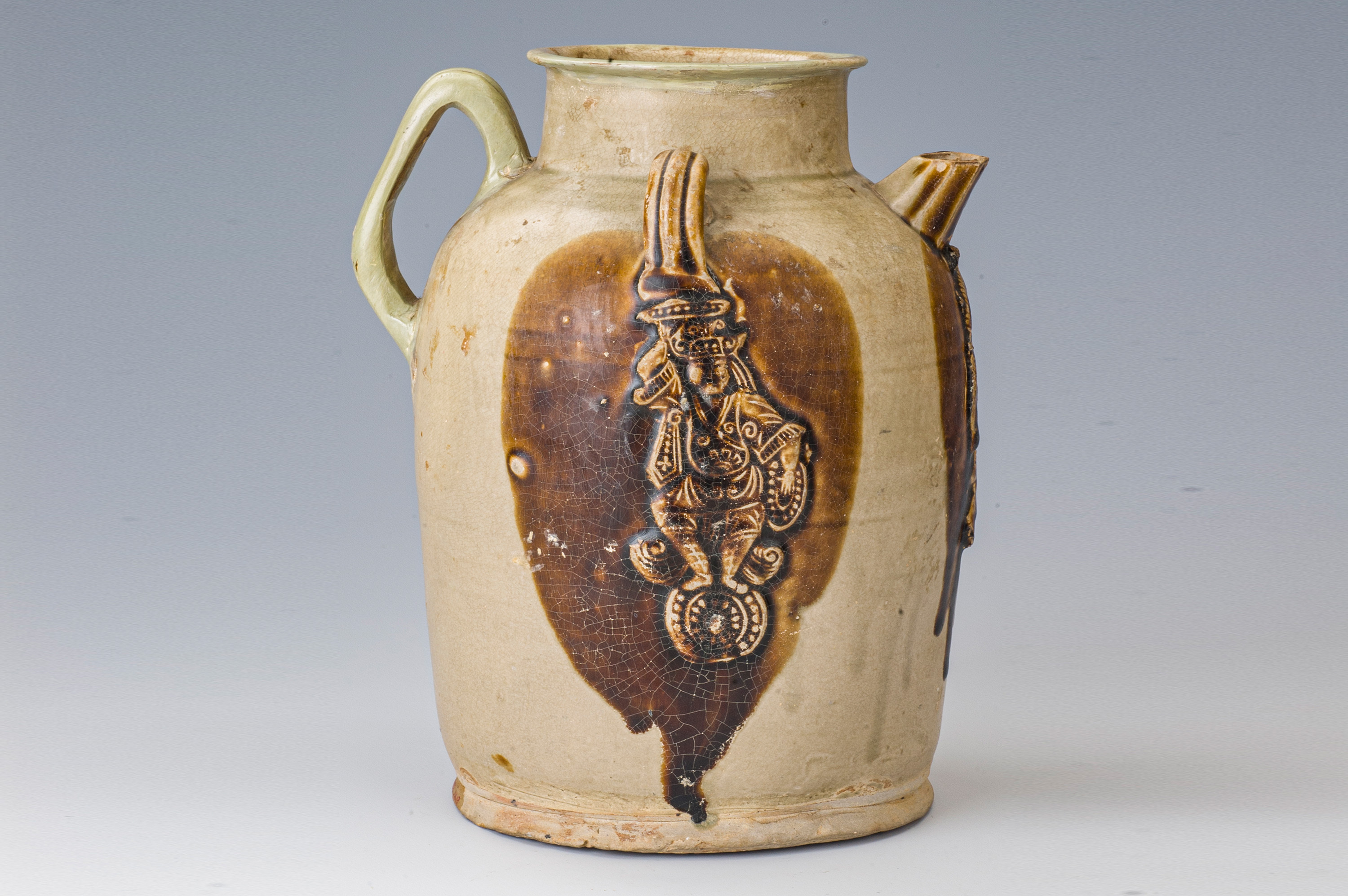 唐长沙窑青釉褐斑贴人物纹瓷壶 长沙博物馆藏
